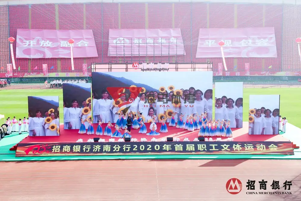 2020年10月17日(星期六)上午8:30,招商银行济南分行2020年首届职工文体运动会于山东省体育中心体育场隆重开幕,由招行济南分行各个支行、部门组成的11支参赛队经过了积极备战,在当天以饱满的热情投入比赛。开幕式上,各参赛队伍在精彩纷呈的入场表演展示了各自的团队风采,他们昂扬挺拔、乐观向上,寓意全行干部员工通力协作,以客户为中心,风雨同舟、欣欣向荣。赛场上,不论团体项目还是个人项目,全体参赛队顽强拼搏,公平竞争、赛出风格、赛出水平、赛出友谊,以良好的体育道德风尚和优异的运动竞技表现展现出招行人的青春风采,取得了运动成绩和精神文明的双丰收。